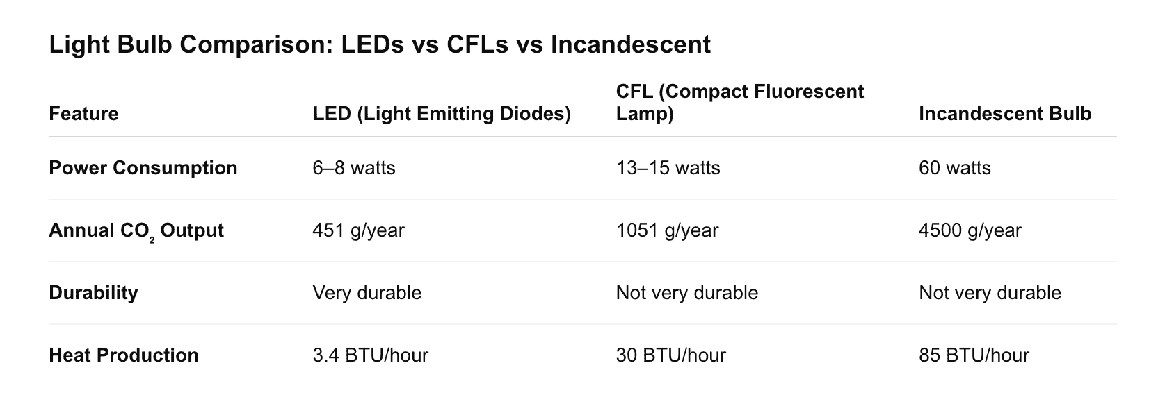 LED lights are commonly known for being more energy-efficient than halogen or fluorescent lights.