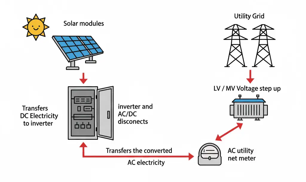 The solar panels themselves produce DC (direct current) electricity, but our homes and electrical grids use AC (alternating current) power. Inverters are used to convert the DC power into AC so you can use the energy from your solar panels.