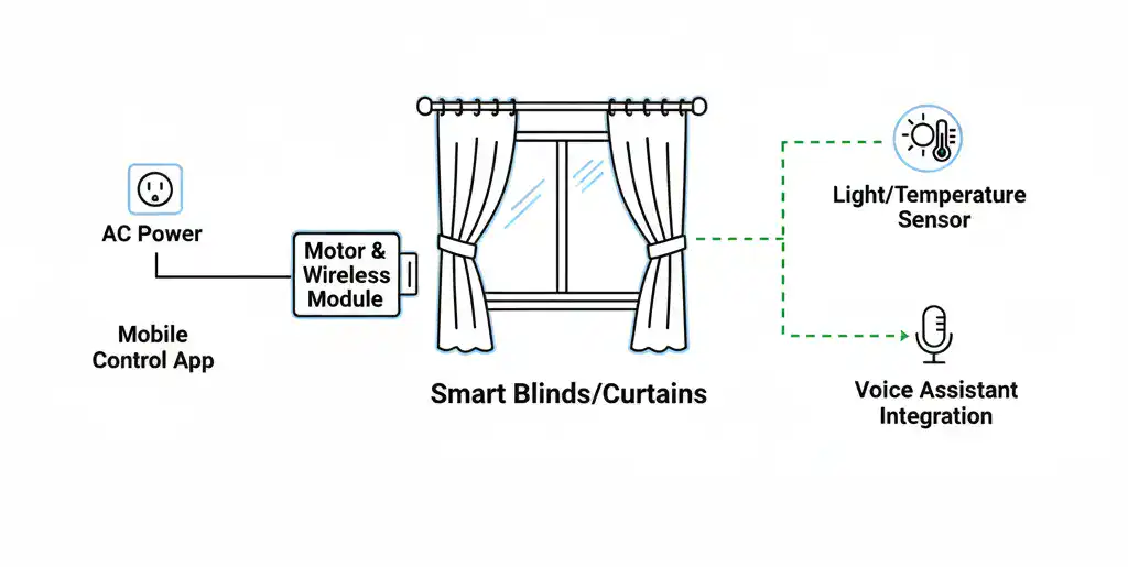 ✅ Why it helps: Smart blinds open or close based on sunlight and temperature. They help block heat in summer and keep warmth in during winter. Pair them with your smart thermostat for full climate control.
