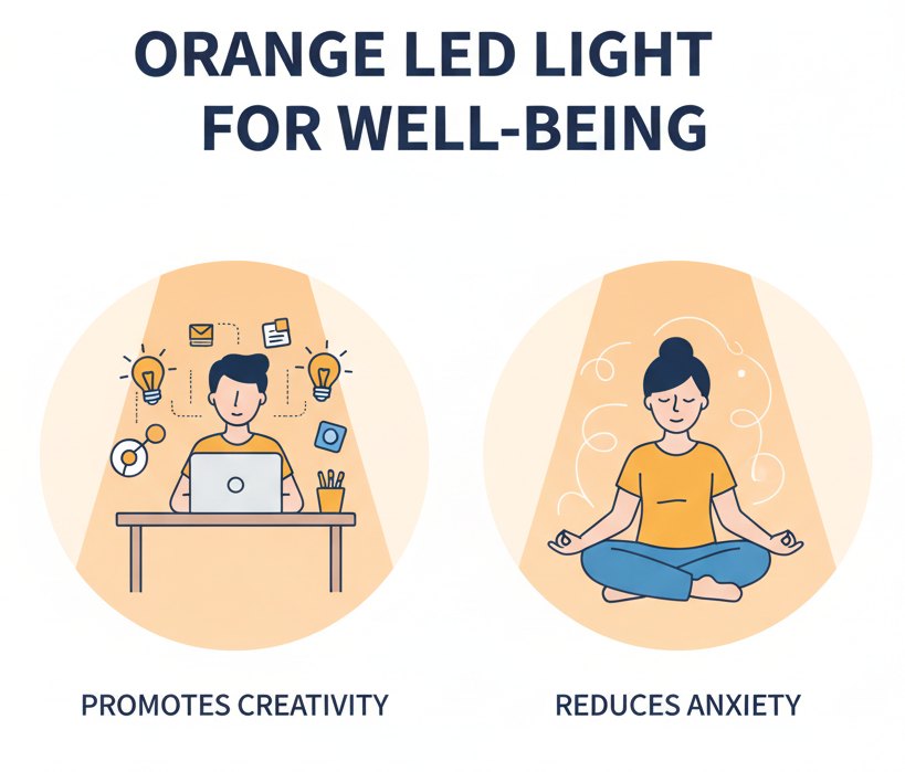 Therefore, an orange LED light might be helpful if you’re trying to get better rest, as it might lead to a more rested night’s sleep and a more inspired morning.