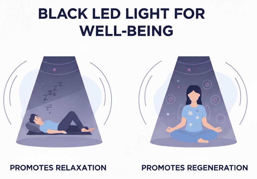 Using black LED light has numerous positive effects. By facilitating the body’s normal sleep cycle, black LED light is restorative and rejuvenating. There is evidence that exposure to black LED light stimulates the body’s natural synthesis of melatonin, the hormone responsible for regulating sleep.