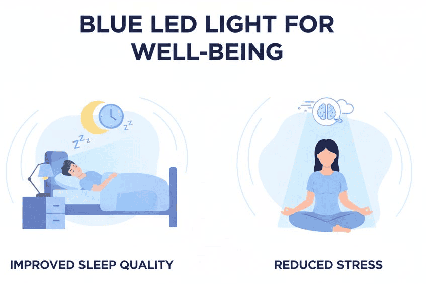 Those who suffer from SAD (Seasonal Affective Disorder), which is a form of depression caused by shortened days during winter, might also benefit from blue LED lighting.