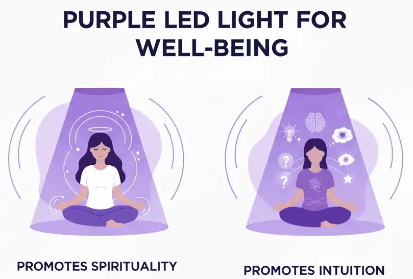 Purple light has a shorter wavelength than other hues, which allows it to penetrate further into the brain. According to a study, people living with Insomnia may find some relief and enhanced sleep quality when exposed to purple light, which is why purple LED light is a great solution to improve your spirituality and sleep.